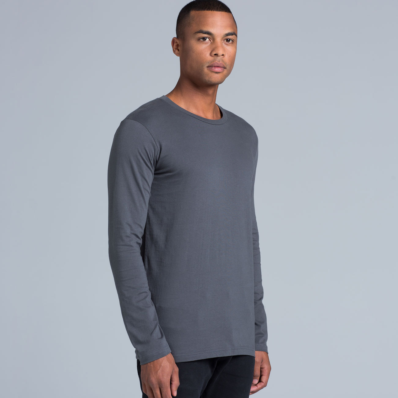 200gsm Premium Long Sleeve t-shirt by AS Colour. Features Shoulder to Shoulder tape, Spit detail at hem (drop at back), ribbing at neck, sleeve cuffs and double needle bottom hem and sleeve.